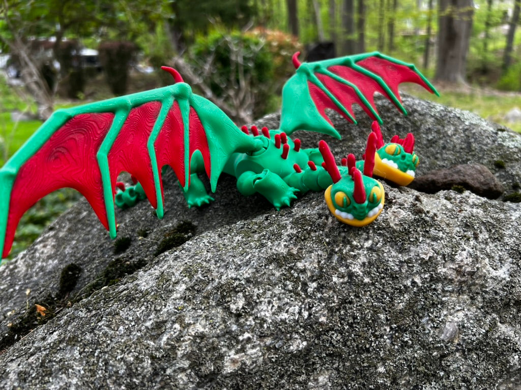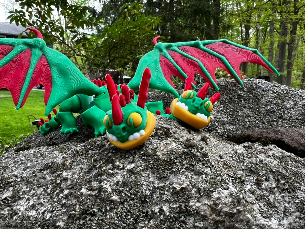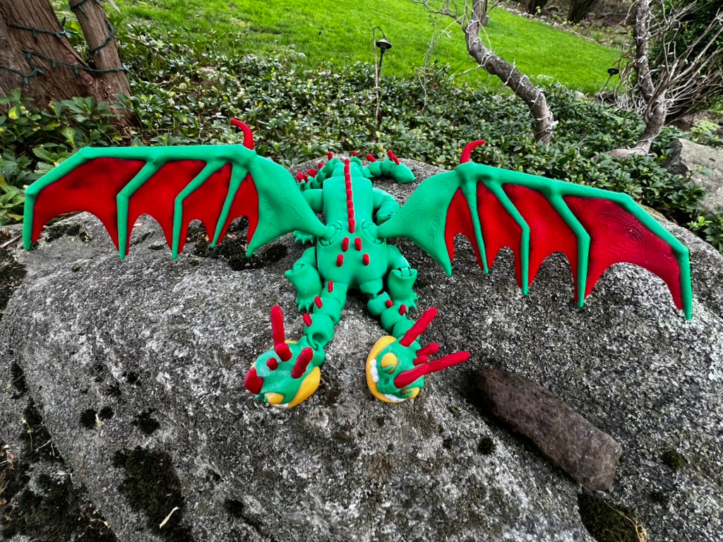 Meet Barf & Belch, the chaotic, two-headed dragon from How to Train Your Dragon, now brought to life in vibrant 3D-printed form! With sprawling red-and-green wings, fierce yellow eyes, and matching grins, this iconic Zippleback is a showstopper for fans of all ages. Whether you're a collector, a fantasy enthusiast, or shopping for a unique gift, this full-size dragon is equal parts fun and ferocious.
